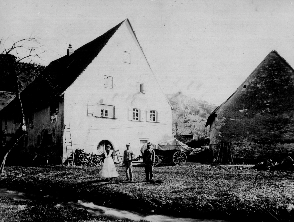 1879 Nach der Oberamtbeschreibung Tuttlingen hatte die Untere Mühle 3 Mahlgänge,1 Gerbgang der Antrieb ist oberschlächtig.